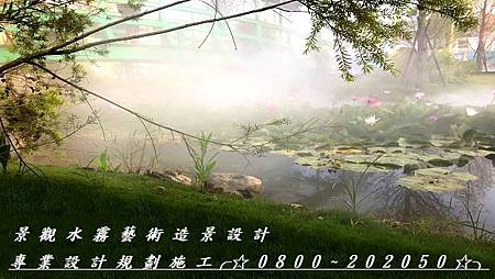 浮雕景觀噴霧設計、建築藝術噴霧、水霧藝術造景、噴霧藝術造景設計、池塘雲霧造景、池塘水霧造景